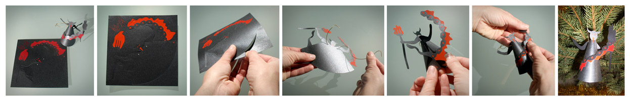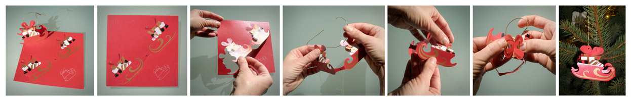Ovaj set čestitki (sačinjen od jedanaest božićnih motiva: Sveti Nikola, Krampus, Djed Mraz, vilenjak, saonice, sob, anđeo, bor, snjegović i zvona) oživljava kada nama draga osoba, primivši čestitku s lijepom željom, od nje napravi ukras za bor, blagdanski ili radni stol. Poput budističkih molitava na papirićima privezanima za grane stabla ispred hrama možemo dobrim željama ukrasiti borove nama dragih ljudi. Svaka čestitka dolazi sa pripadajućom kovertom i vezicom.