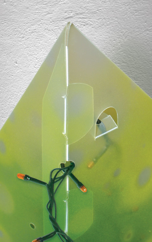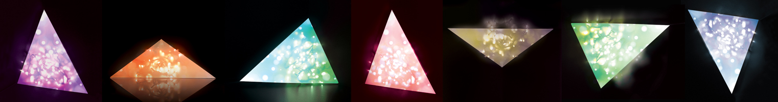 Novi dodatak - stalak od sjajnog crnog pleksiglasa - multiplicira odraze "oka" svjetiljke koji, ovisno o kutu gledanja, tvore različite oblike. Tako na još jedan način - mijenom - povezuje svjetiljku s prirodnom Aurorom borealis.