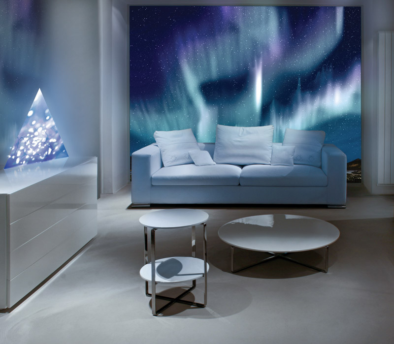 Aurora borealis fenomen je "rubnih" dijelova Zemljine kugle (oko magnetskih polova). Tako je i ova svjetiljka namijenjena pozicioniranju u kuteve prostorija (na pod ili uz strop) odakle će blago svjetlo maglovitu zimsku snježnu noć učiniti još svečanijom, a zvjezdanu ljetnu još romantičnijom.