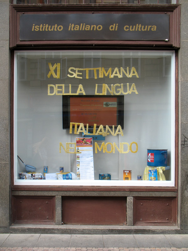 U listopadu, a zatim i u studenom za vrlo skroman budžet tematski smo uredili jedan od izloga Instituta. Prvi izlog prezentirao je 11. tjedan talijanskog jezika u svijetu kada je obilježena i stota obljetnica smrti Pellegrina Artusija, značajne osobe za ujedinjenje talijanske kulinarske tradicije i jezika. Drugi izlog tematski je bio vezan za 6. tjedan novog talijanskog filma u Zagrebu i Rijeci.